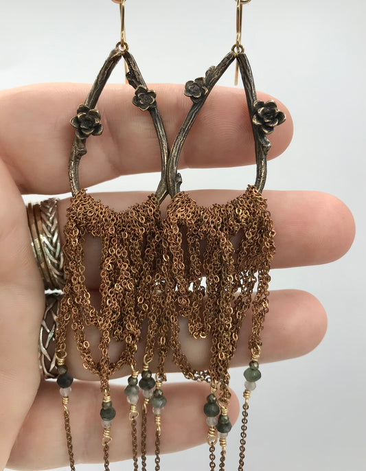 Earrings: Flower Tassel: Bronze/Hot Pink chain