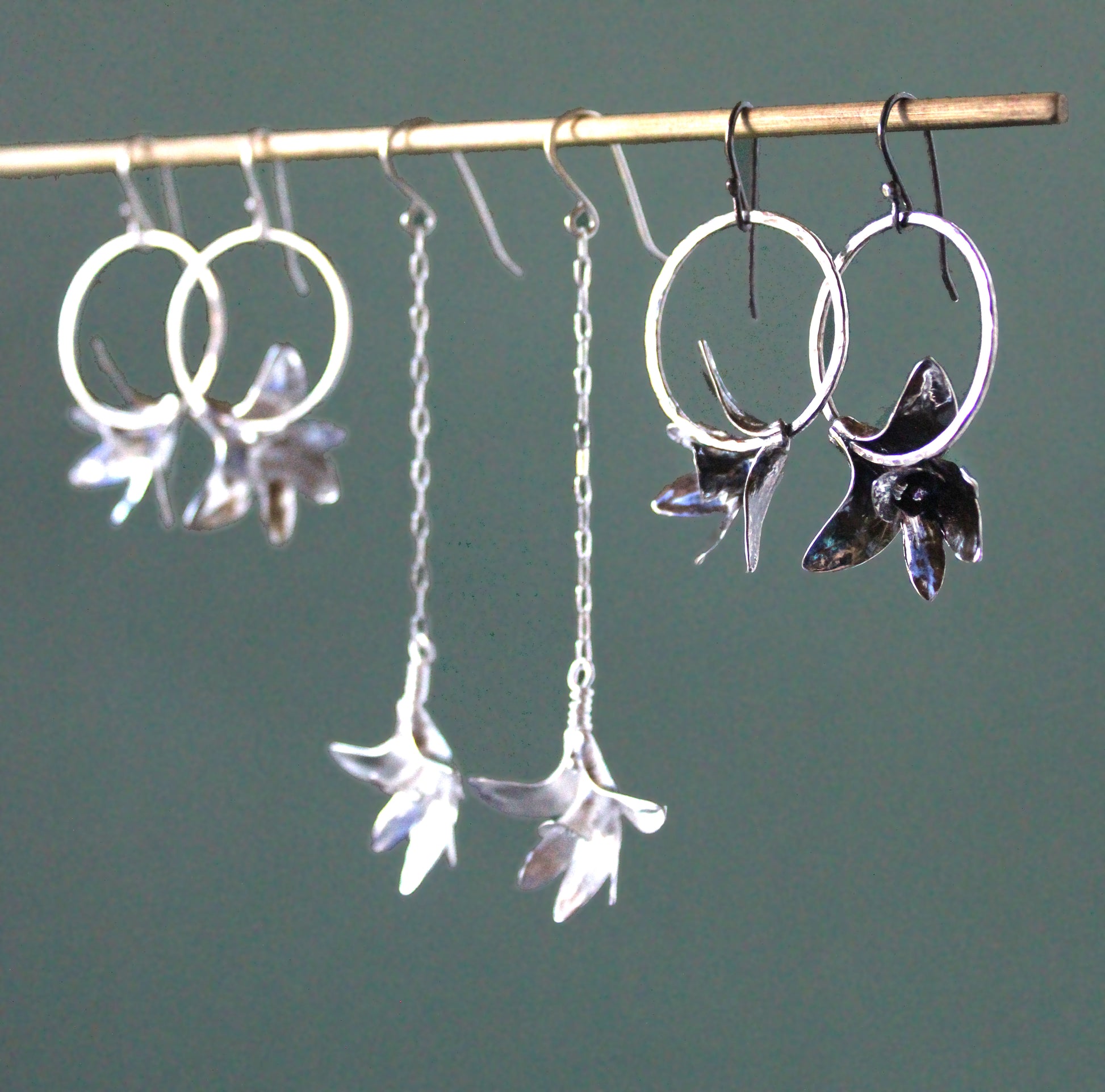 Cast from a real orchid bloom, these earrings are delicate and interesting.